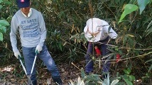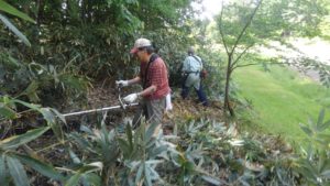 花咲か市民らによって植えられたさくらの周辺にはびこる笹を始末する恒例の作業が、7月11日、緑陽プール近くのトリムコース周辺で実施されました。 役員を中心に8名が参加。当初は午後1時集合の予定でしたが、一部のメンバーは早くも午前中から活動を開始し、強い日差しの下、全員が木々の成長を願って汗を流しました。