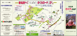 一連の設立10周年記念事業の締めくくりとなる「さくらマップ」 が完成、市内の全22500世帯を対象に無料配布されました。 多くの市民に「お花見ガイド」として活用されることを目ざして発行したこのマップでは、「北広島のさくら見どころ」25か所を取り上げて地図上に表示し、各スポットの概要や駐車場、トイレの有無などについて記したほか、満開時に11か所で撮影した写真を添えました。裏面には「新名所へ『さんぽまち さくらロード』3キロ」のイラストを掲載。会員や花咲か市民によって植えられた400本が美しく花開き、中の沢・ふれあい公園とJR北広島駅を結ぶ「さくらロード」を形づくる様子が、明るいタッチで描かれています。